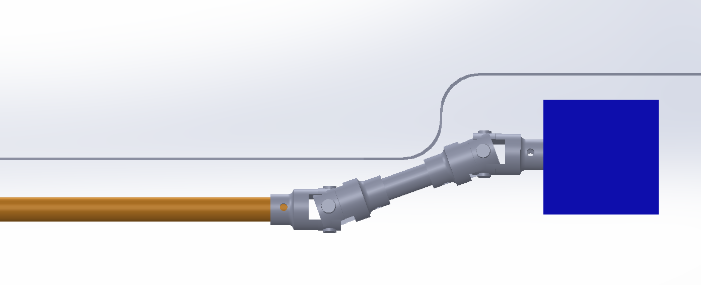 No projeto da transmissão, nos deparamos com a necessidade de utilizar alguma solução para compensar a diferença de altura entre a saída do redutor e a entrada do diferencial. Pensamos em utilizar uma junta dupla (IMAGEM EM ANEXO) que estaria ao final do cardã (em laranja) e conectada a um diferencial (em azul), haverá uma proteção para o piloto em cima da junta e se estendendo até o diferencial. Gostaríamos de saber se isso entra em conflito com o que esta sendo descrito no trecho em anexo do Informativo 35 (na página 4, primeiro parágrafo) e se seria contra o informativo levar para competição o que propomos como solução.