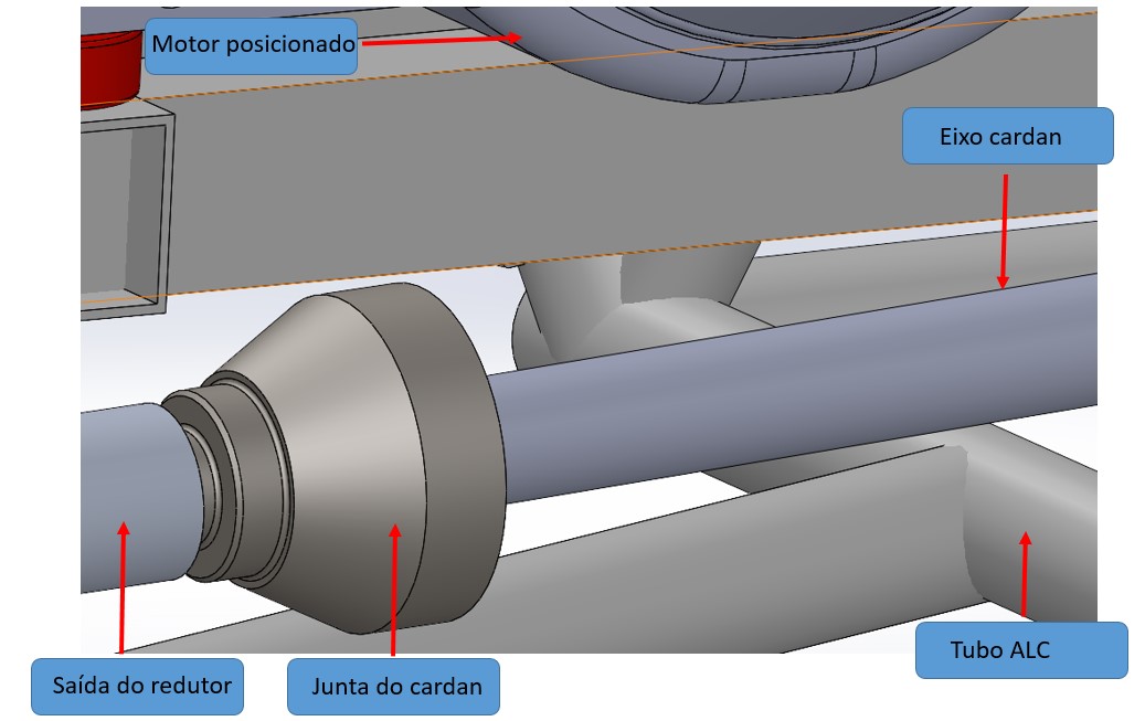 Pergunta: Entendemos que todos componentes rotativos que estejam localizados dentro do cockpit precisam estar protegidos com anteparos. No nosso projeto temos a junta que conecta a caixa de redução com o cardan fora do cockpit de acordo com a imagem "junta do cardan fora do cockpit." Gostaríamos de saber se é necessário um anteparo de proteção para esta junta ? Visto que o segundo parágrafo citado acima afirma que todos componentes móveis devem ser protegidos enquanto o primeiro refere-se que somente os componentes móveis dentro do cockpit devem ser protegidos com anteparos.