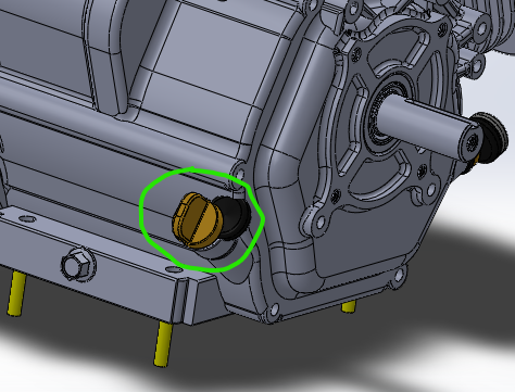 Devido a uma questão de espaço no projeto de powertrain do nosso protótipo em construção gostaria de saber se é permitido alterar o tamanho da parte amarela do parafuso alimentador de óleo do motor Honda que está em destaque na imagem, no caso seria reduzir a altura dessa espécie de tampa, mantendo toda a parte de vedação original e não obtendo nenhuma vantagem dinâmica nem oferecendo riscos a saúde.