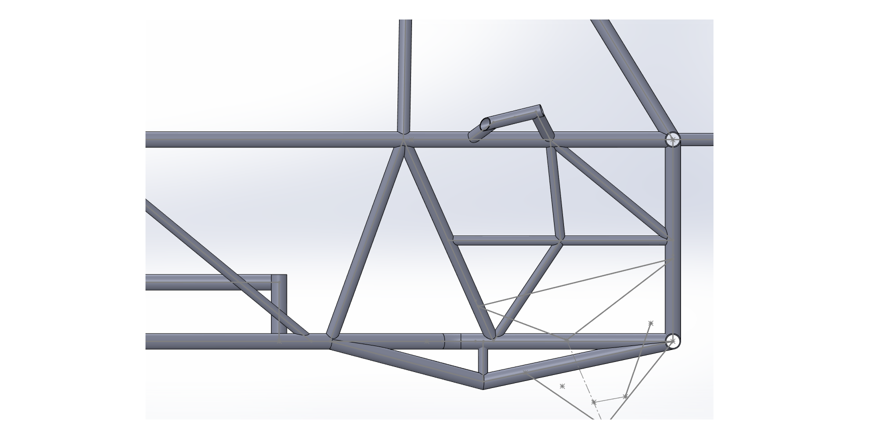 A solução que encontrei foi ancorar o ponto de suspensão conforme consta no regulamento, porém em um plano abaixo do assoalho (como um segundo assoalho) com membros primários e secundários e com um segundo membro ILC. No caso todo esse "assoalho" não possui contribuição alguma para a gaiola de proteção como determina o item 6.2.1, porém mesmo tratando todo o conjunto da figura 3 (em anexo) como um ponto de ancoragem de suspensão achei por bem faze-lo com membros primários e secundários. A solução está demonstrada nas figuras 1,2 e 3 (em anexo), gostaria se saber se é valida e caso seja, onde posso posicionar o segundo ILC.