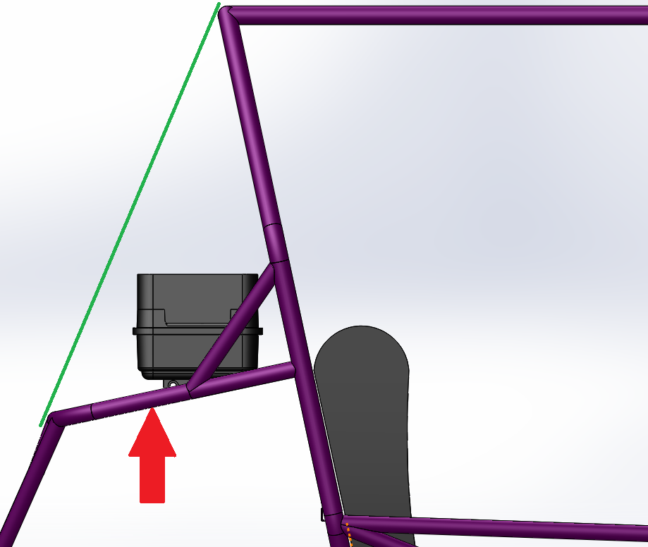 O regulamento exige que o motor e todos seus periféricos estejam contidos dentro do envelope físico da gaiola. Ou seja, o tanque também deve estar envolto pelos tubos da parte traseira da gaiola, independente do tipo de contraventamento utilizado. Isso significa que não basta o tanque estar dentro do chamado "envelope de capotamento" (indicado pela linha verde na figura enviada pela equipe).