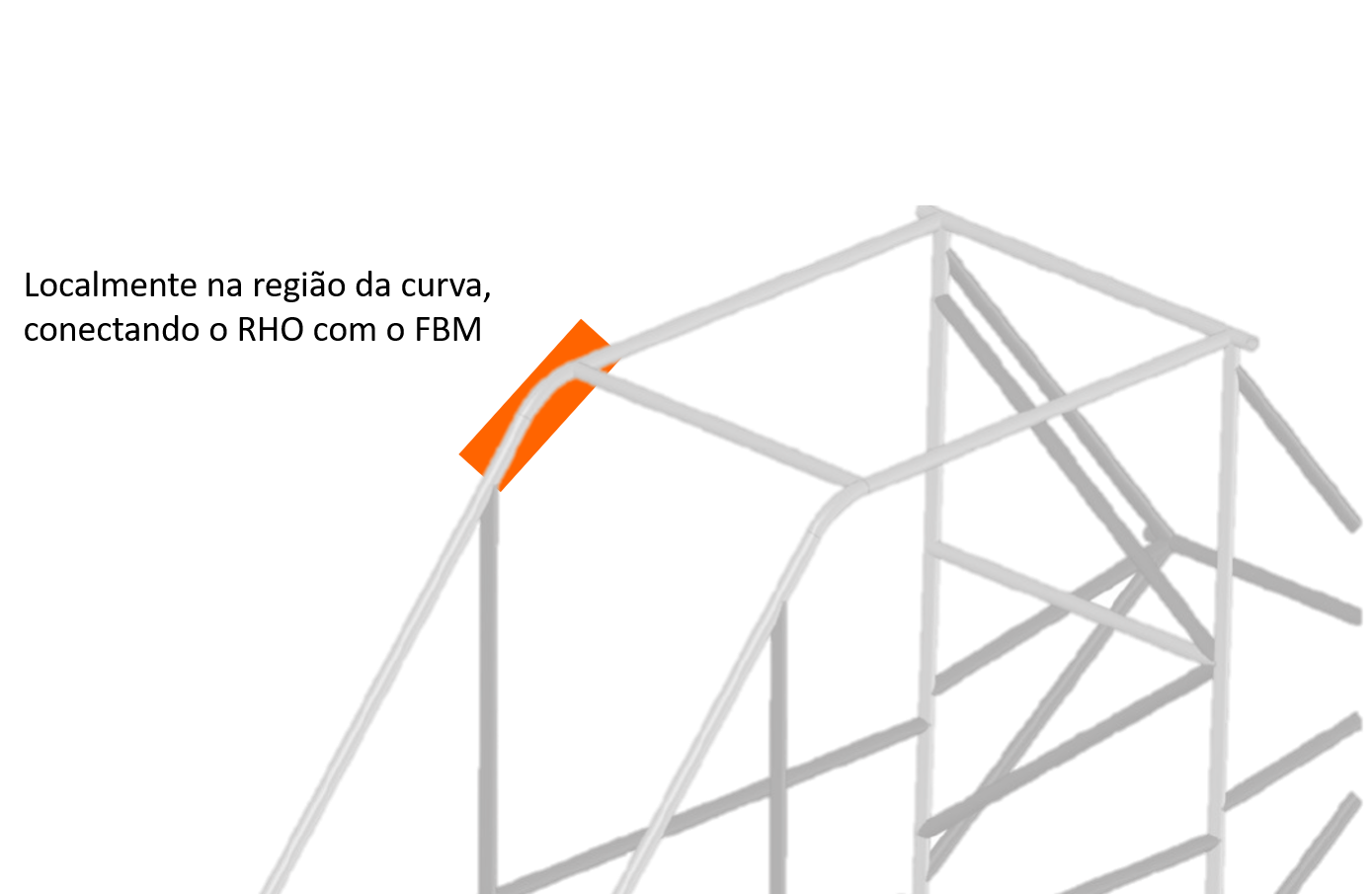 De acordo com as fotos apresentadas, pedimos que seja feito um reforço local, com a solda de uma chapa de 2 mm localizada lateralmente na região da curva. Segue anexo um esboço com a posição da chapa, para não haver equívocos. Realizar o procedimento dos lados esquerdo e direito da gaiola. Não é necessário realizar o procedimento em ambos os lados do tubo.