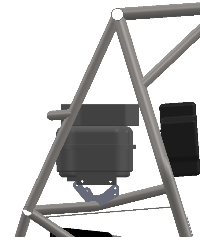 Conforme a equipe ressaltou, o item B10.5.1 é claro quando diz que "Todo o sistema de combustível, incluindo o tanque, proteção de derramamento, proteção de respingo, e motor, esteja localizado dentro do envelope da gaiola de proteção (membros conforme B6.2.2, sejam eles obrigatórios ou adicionais), definido como a superfície formada pela aplicação de uma reta sobre dois pontos quaisquer nos membros externos da gaiola." Desta forma, da maneira apresentada, a solução não cumpre o regulamento