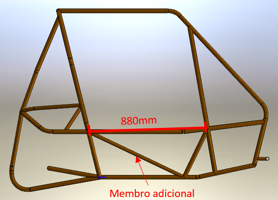 Sendo assim, a gaiola de proteção atual, que possui o travamento dianteiro, poderia ser validada através dessas simulações ou seria necessário a adição do membro adicional no centro da curva até um ponto denominado? Caso nenhuma das opções seja possível, qual seria a solução ideal?