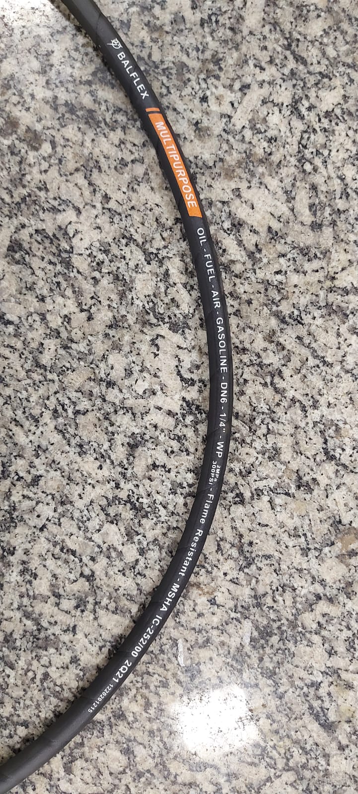 Compramos, pela segunda vez, uma mangueira que tem o diâmetro interno de 1/4" e é própria para gasolina. No entanto, o diâmetro externo dela é 13,7 mm, o que difere, por 0,2 mm, do item B10.2.4 do RATBSB emenda 04 ("Como tolerância para a dimensão real das mangueiras, aceita-se diâmetros externos com mínimo de 12,7 mm (0,50 in) e máximo de 13,5 mm (0,53 in)").