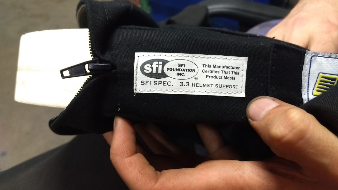 A nossa equipe está com dúvida quanto ao modelo de protetor cervical comprado no final do ano passado (dez/18). O protetor tem etiqueta SFI costurado na região externa, enquanto a data de fabricação (DOM) se encontra na região interna do protetor. Pelo fato de isto ser um pouco incomum, gostaríamos de consultá-los. Além destas marcações, temos junto a nota fiscal emitida pela fabricante. Em anexo, segue fotos.