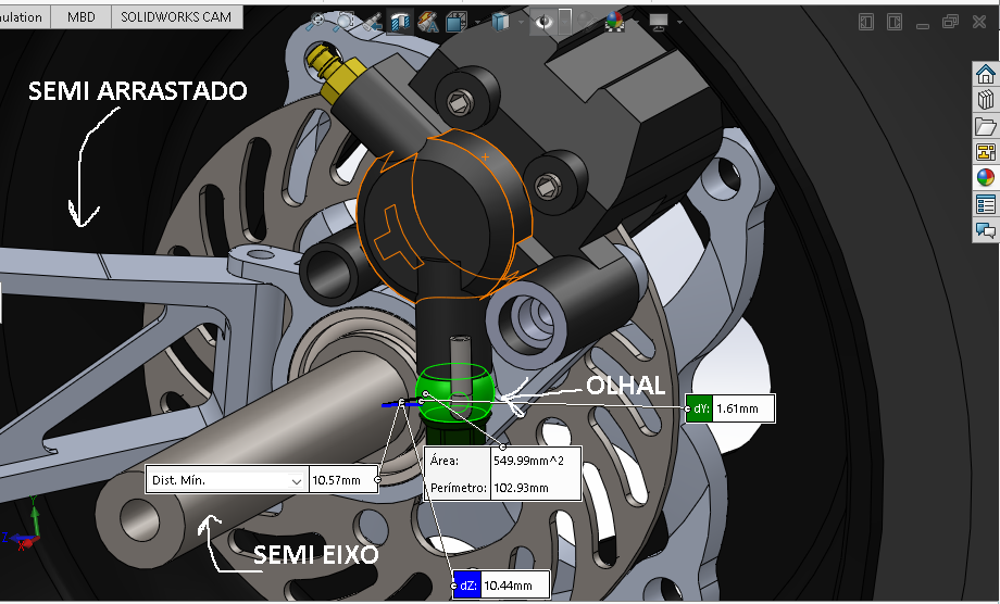 Gostaria de saber se teríamos problemas com o posicionamento da pinça nas imagens anexadas, que representa a montagem do montante traseiro esquerdo, e com a saída do flexível assim como sua passagem. Usamos swing axle para suspensão tarseira e dessa forma a linha flexível sairia pelo olhal com 90º de inclinação, como mostrado nos anexos, contornaria por cima o semi eixo e em seguida a linha seria fixada ao longo do semi arrastado da suspensão até chegar na parede corta fogo