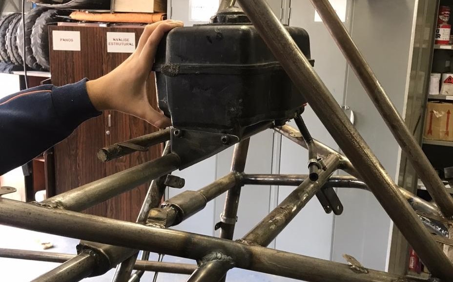 Meu nome é Ana Júlia e faço parte da Equipe Saci. Tivemos algumas dúvidas a respeito do posicionamento do tanque de combustível na gaiola, que no caso seria o item B10.1.4 do regulamento. Nós gostaríamos de saber se a posição do tanque nas imagens em anexo está adequada ao regulamento ou se seria considerada em balanço, sendo necessário soldar mais uma aba no outro tubo por exemplo.