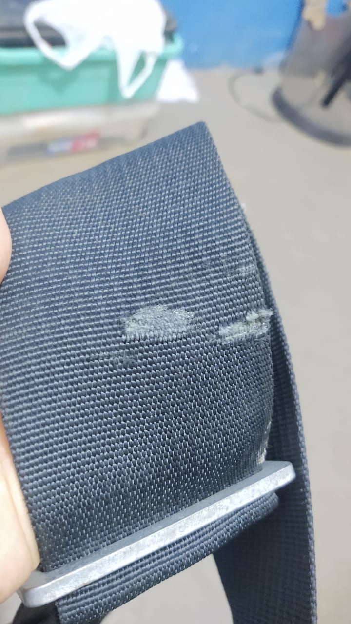 Bom dia. Localizamos recentemente algumas rasuras na parte de trás na região do shoulder no cinto de segurança. Gostaria de saber se esses elementos comprometem a validade do uso do cinto. Segue fotos em anexo.
