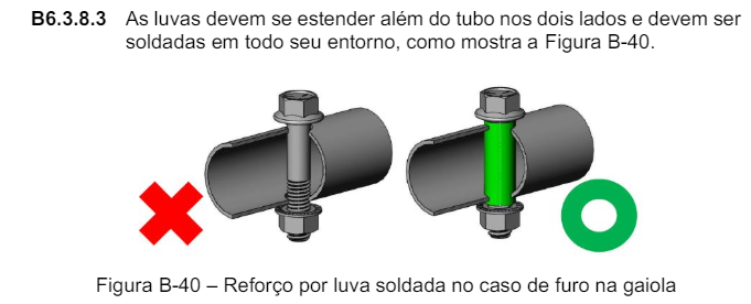Surgiu-nos uma dúvida com relação a utilização e possível design das luvas para furos na gaiola, no Regulamento Administrativo e Técnico Baja SAE BRASIL, consta a seguinte imagem 1 em anexo.