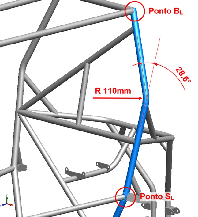 Finalizamos a fabricação do CB10, protótipo construído ao longo do ano de 2017 para a 24ª Competição Baja SAE BRASIL. Estamos realizando os últimos testes de validação do protótipo e redigindo o relatório técnico a ser entregue em 18 de dezembro de 2017 (em exatamente 50 dias). A Figura A apresenta a vista superior da parte frontal da gaiola, com o membro SIM esquerdo em azul.